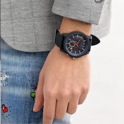 In 1991 I hadean intuition, and I called it A|X. Looking at the reality of the street, before it became just another vogue, I created fast, affordable metropolitan clothing for the young generations or those with a young mindset. The spirit persists today in apparel and accessories that speed forward to an urban drum keeping the quintessential effortlessness and the active stance of the GA DNA." -Giorgio Armani Designed with the ambition to create fast fashion featuring urban lifestyle influences, these handsome watches provide standout style no matter where you go. Whether you're looking to shake things up or finding a new way to stay true to your inner style, an Armani Exchange men’s watch is the answer.