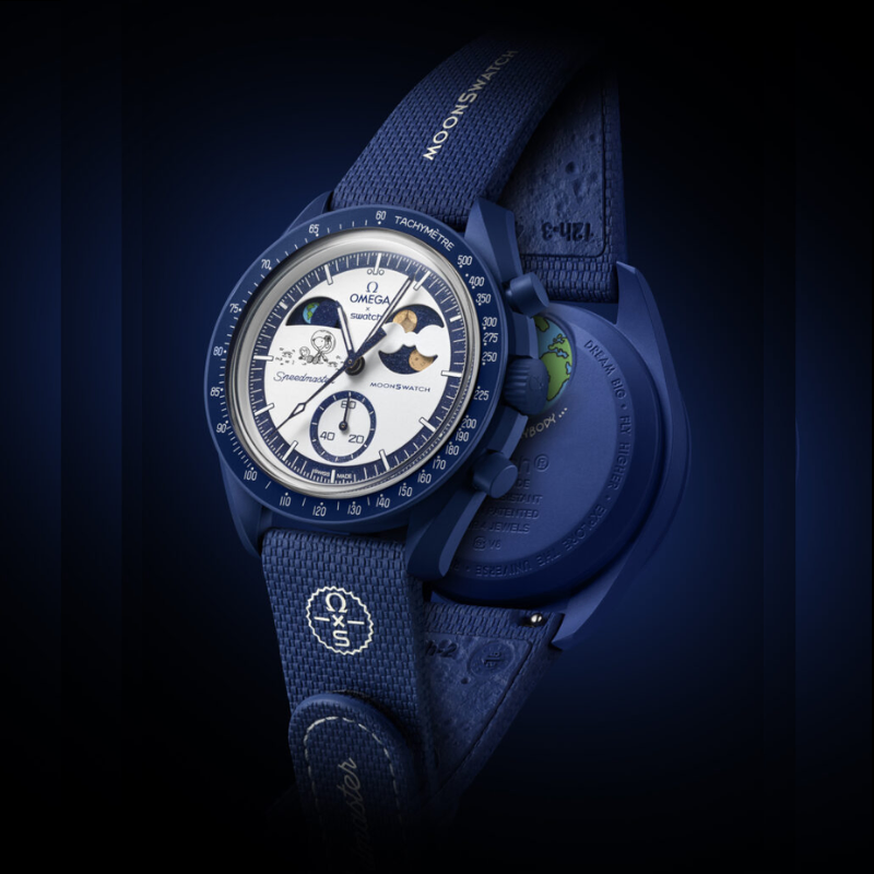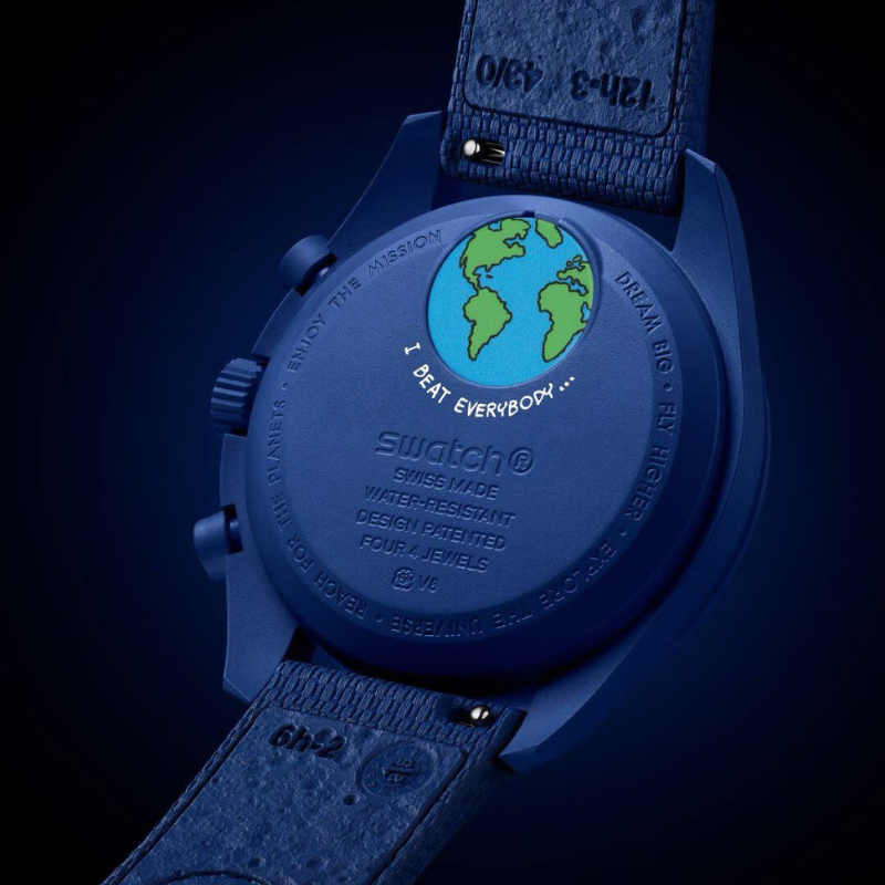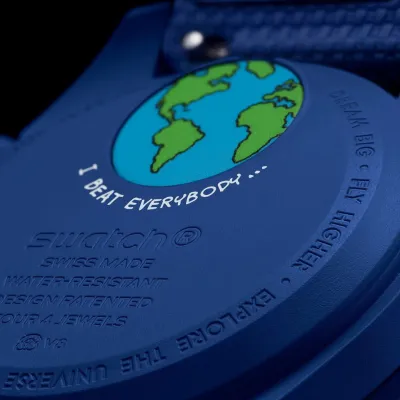 Finished with anEarth-inspired battery cover, astronaut-style VELCRO® strap, and co-brandedwith OMEGA x Swatch, this watch blends innovation, playfulness, and collectorappeal in one iconic design.