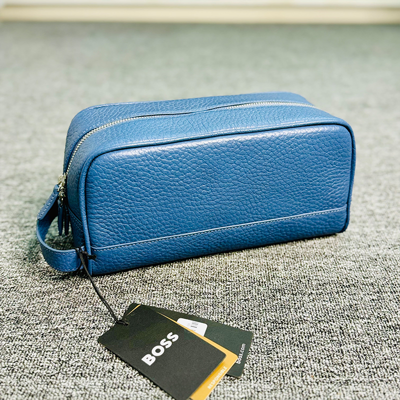 Designed with modern luxury in mind, the BOSS First Class Wash Bag in sky blue combines stylish flair with practical organization. Crafted from premium durable materials, it features a spacious main compartment, internal and external pockets, and elegant metal zippers. A refined travel essential that elevates your grooming routine with a fresh, vibrant hue.