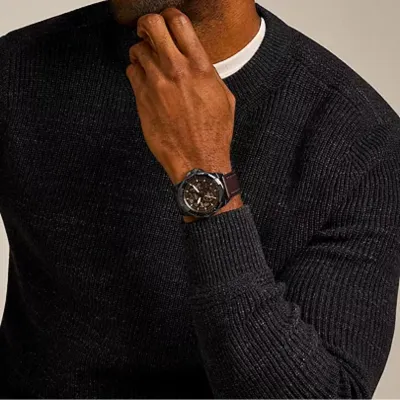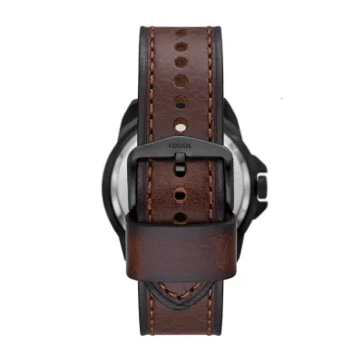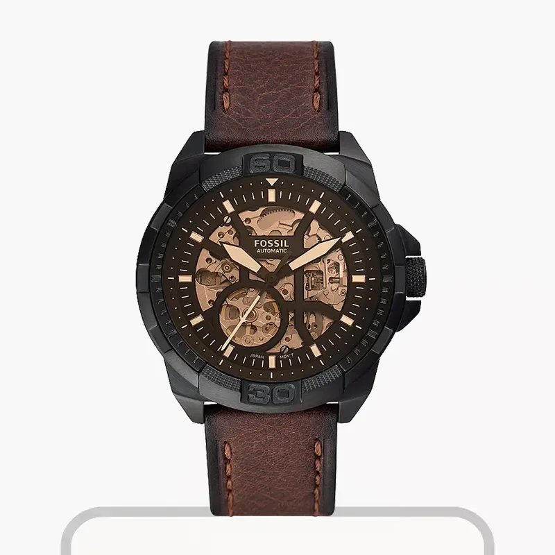 This Fossil BronsonAutomatic Men's Watch is the perfect combination of elegance and functionality,taking you effortlessly from everyday life to evening events. Its timelessdesign features a sleek black leather strap and a sophisticated gunmetal dialwith gold accents. With its automatic movement, you can depend on it to keepaccurate time wherever you go.