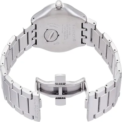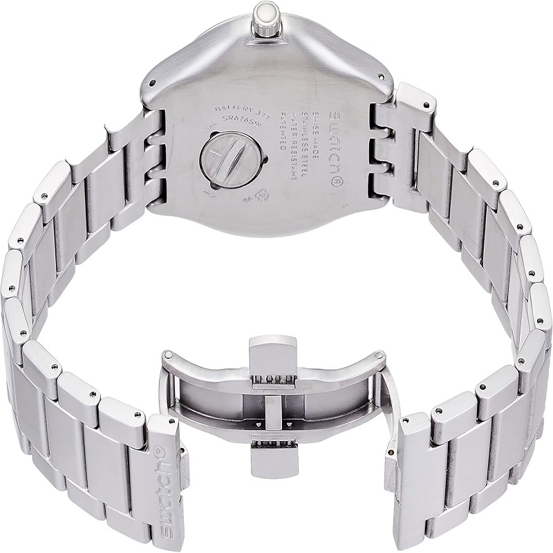 with a round silver stainless steel case measuring 41mm in diameter and 11mm in