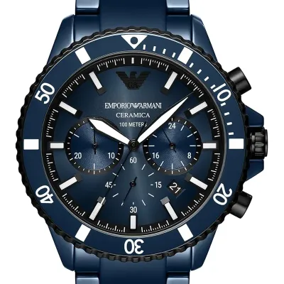 The stunning bluedial of the Emporio Armani AR70009 is housed in a sturdy 43mm ceramic casing.It combines style and functionality with its world time feature, calendardisplay, and illuminated markers. For contemporary travelers who appreciatesophistication and adaptability, this chic watch is perfect. Learn about theArmani World Explorer Blue Dial Men's Watch. Designed for contemporarytravelers in Bangladesh, it is the ideal fusion of luxury, adventure, andstyle.