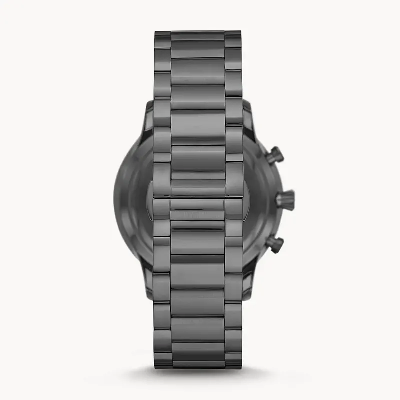 Lending a contemporary twist to an elegant design, this men analog watch from Emporio Armani is a must-have wrist essential. Its strap comes in a shade of black that elevates the look of the watch. The black round dial is secured by a mineral glass and is housed in a case. It exudes chronograph, and a crown for time adjustment. Furthermore, it is completed with a jewellery clasp clasp to ensure a secure fit on the wrist.
