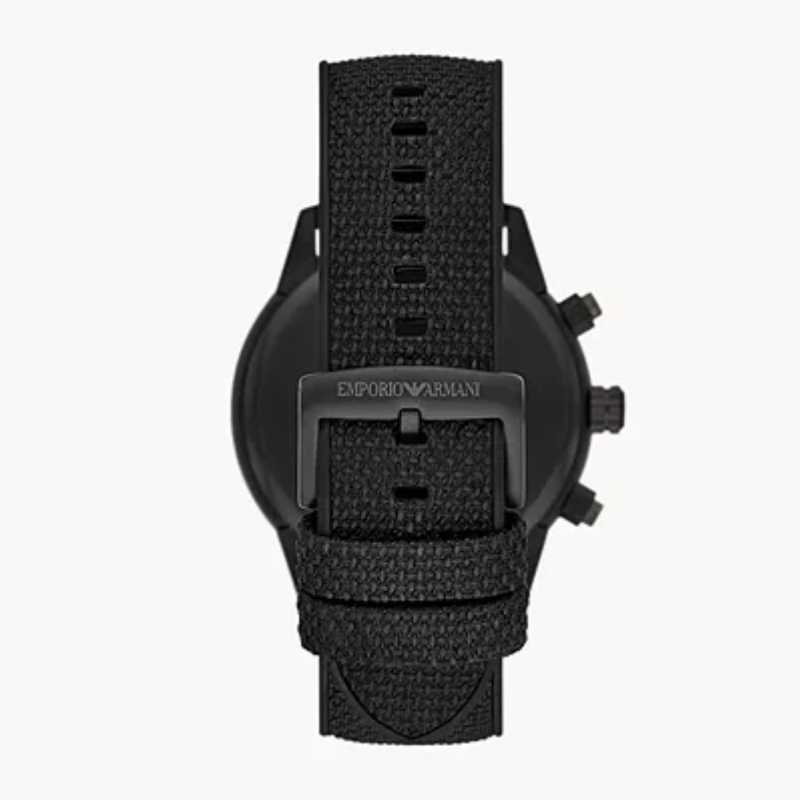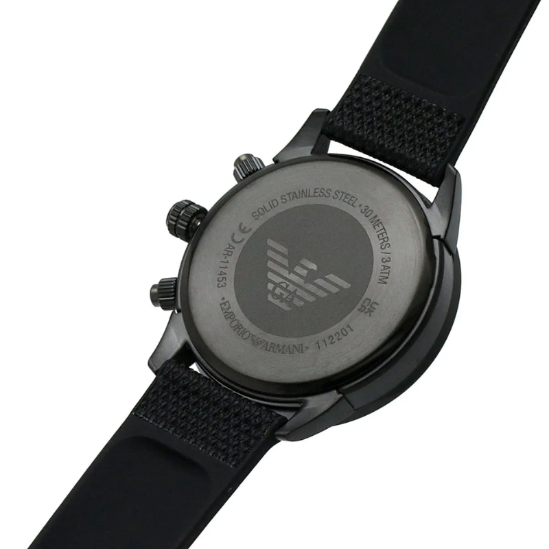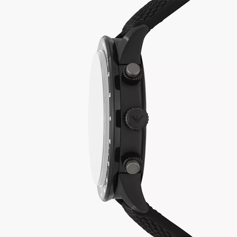 Lendinga contemporary twist to an elegant design, this men analog watch from EmporioArmani is a must-have wrist essential. Its strap comes in a shade of black thatelevates the look of the watch. The black round dial is secured by a mineralglass and is housed in a case. It exudes chronograph, and a crown for timeadjustment. Furthermore, it is completed with a buckle clasp to ensure a securefit on the wrist.