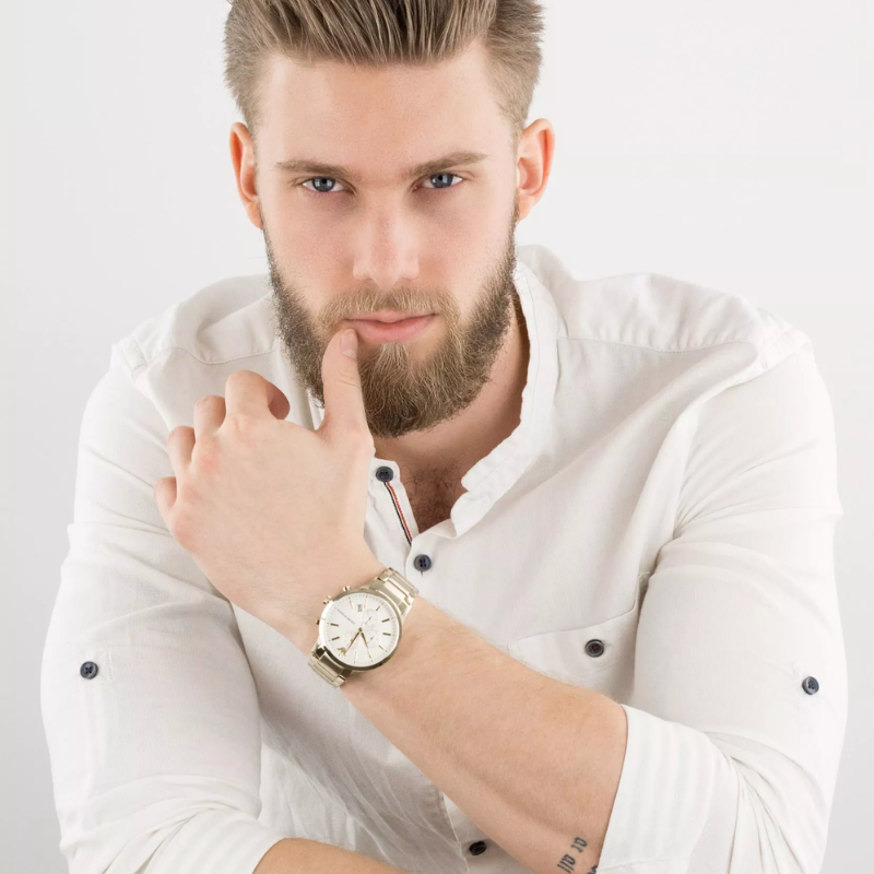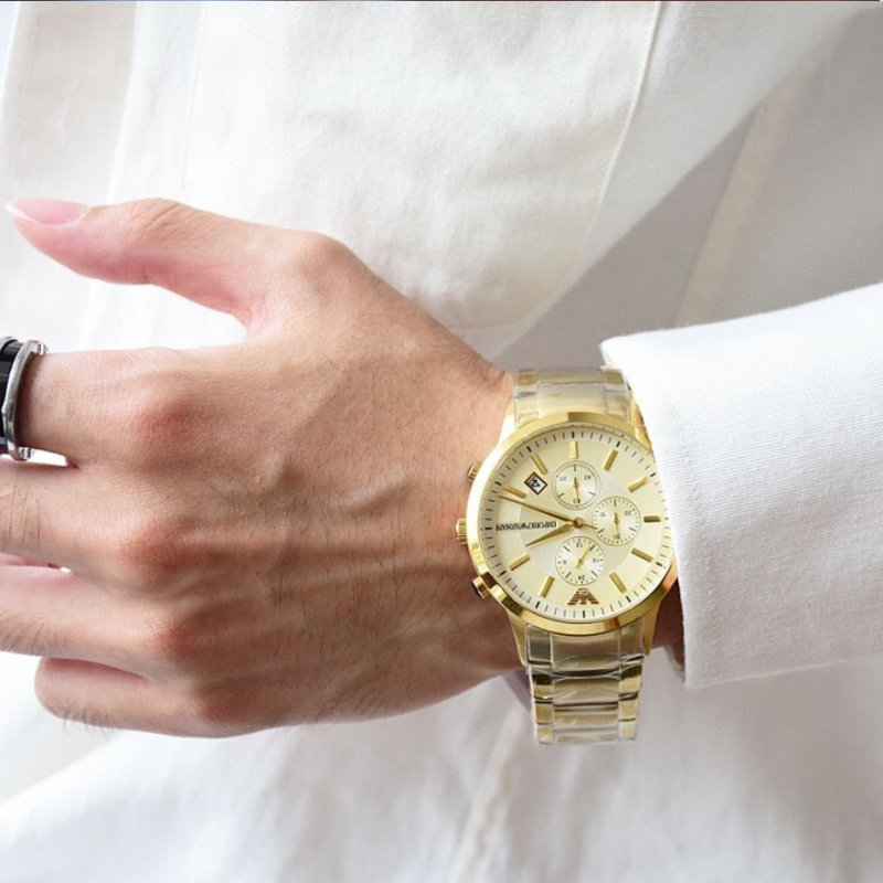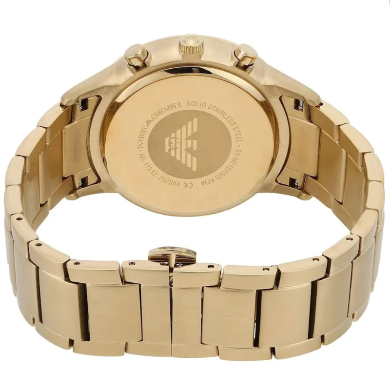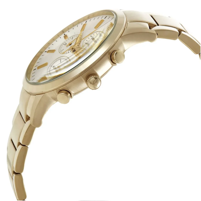 The Emporio Armani Renato AR11332 is a stylish men’s fashion watch designed to match both casual and formal looks. Powered by a precise quartz movement, it features a premium gold-tone stainless steel case and bracelet for a polished, luxury finish. The clean beige dial offers easy readability and is protected by durable mineral crystal for scratch resistance. With 50m water resistance, this authentic Emporio Armani timepiece is built for confident everyday wear.