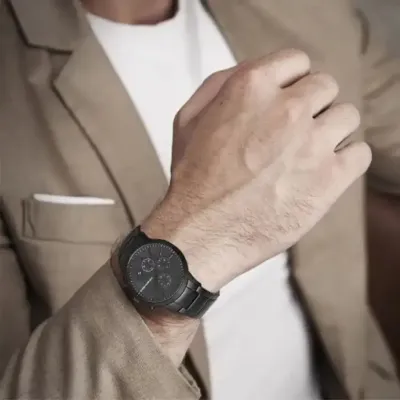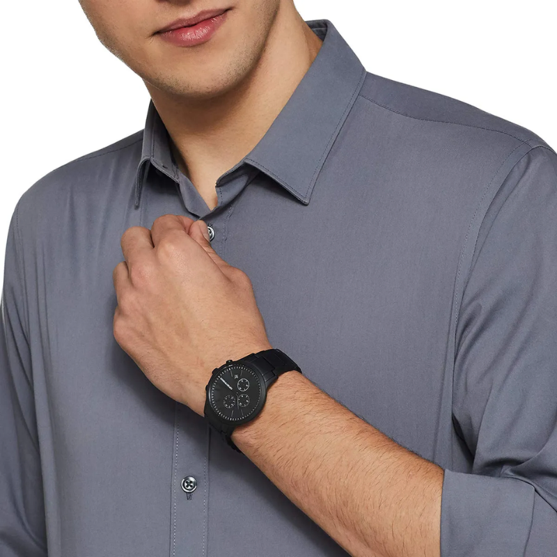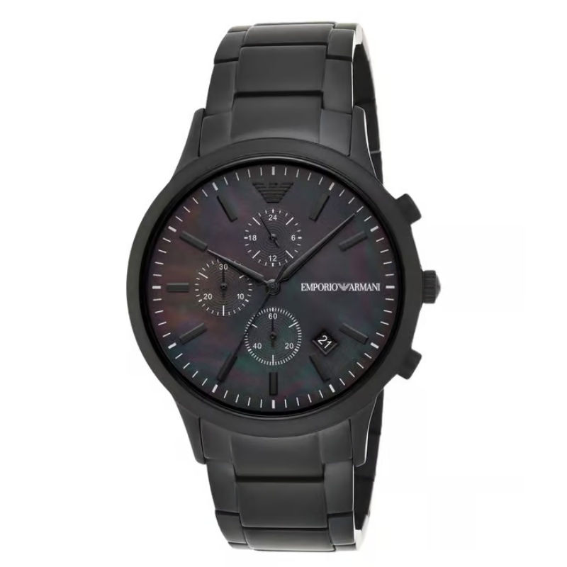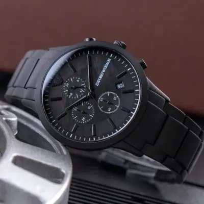 Lendinga contemporary twist to an elegant design, this men analog watch from EmporioArmani is a must-have wrist essential. Its strap comes in a shade of black thatelevates the look of the watch. The black round dial is secured by a mineralglass and is housed in a case. It exudes chronograph, and a crown for timeadjustment. Furthermore, it is completed with a jewellery clasp clasp to ensurea secure fit on the wrist.