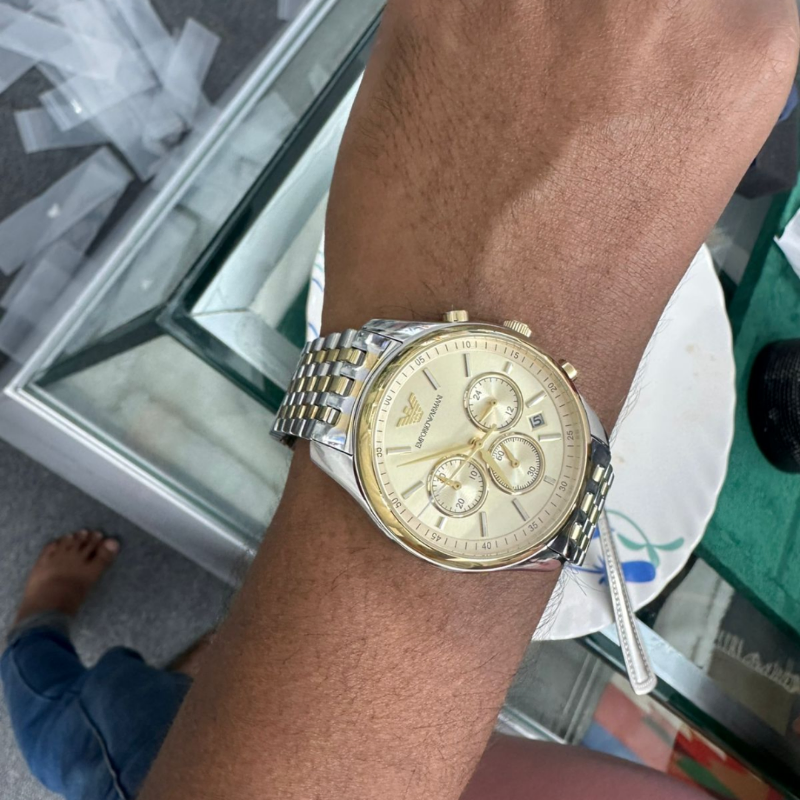 Indulge in luxury with the Emporia Armani Tazia Blue Dial Two-tone Men's Watch. Crafted with exquisite precision, this timepiece boasts beautiful blue dial and two tone design. Stay punctual and stylish with this sleek and sophisticated watch. Elevate your style with Emporia Armani.