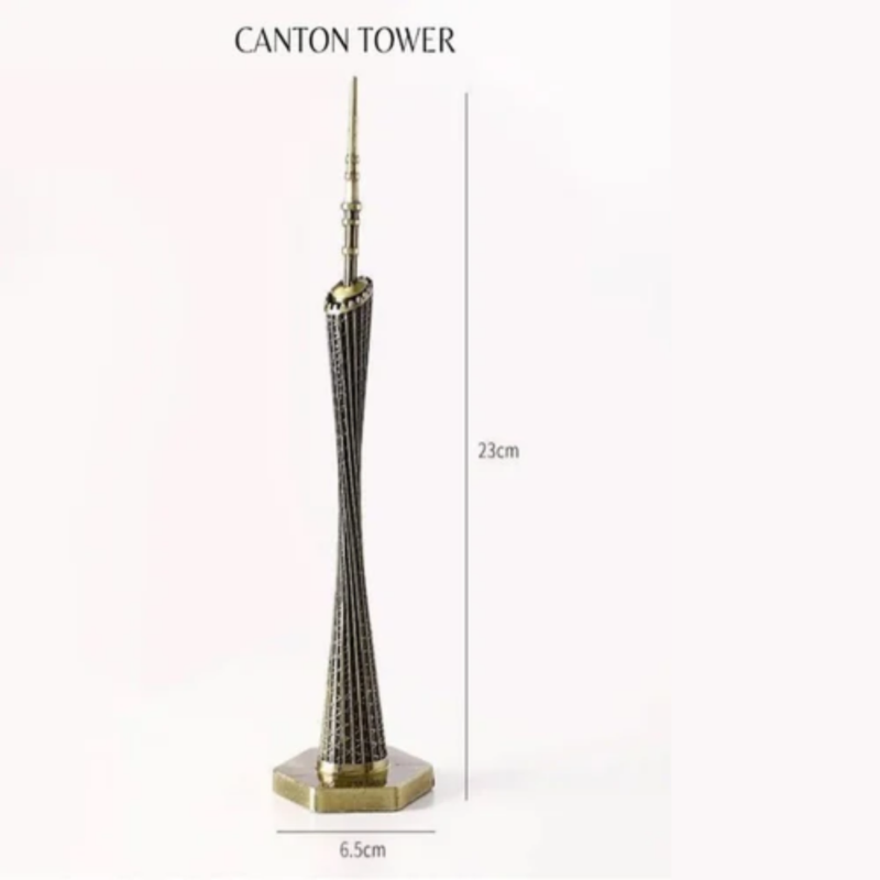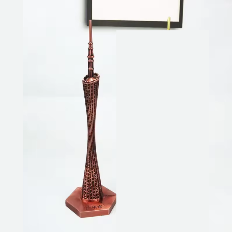Material:Iron Alloy. Color: Antiqued Bronze. Guangzhou Tower Model: LargeSize:28*8cm;Weight:300g.Small Size:20*6cm;Weight:250g.Burj Khali fa TowerModel: Large Size:18*6.5cm;Weight:150g.Small Size:13*5cm;Weight:80g.PackageIncluded:1x Tower Model.