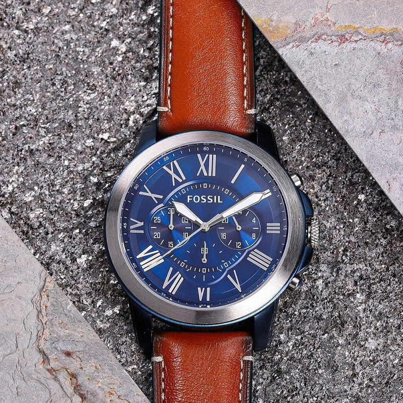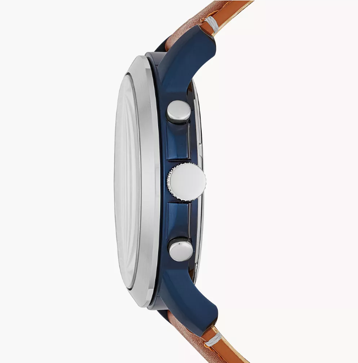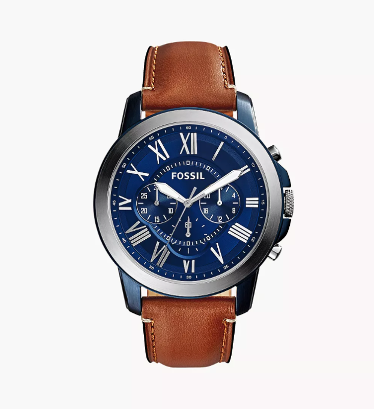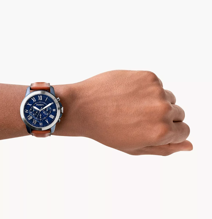 Builtto outlast fleeting trends, our refined Grant is a superlative investment fitfor any occasion. This timeless chronograph gets refreshed for the season witha handsome blue dial, silver-tone topring, white hands and light brown leatherstrap.