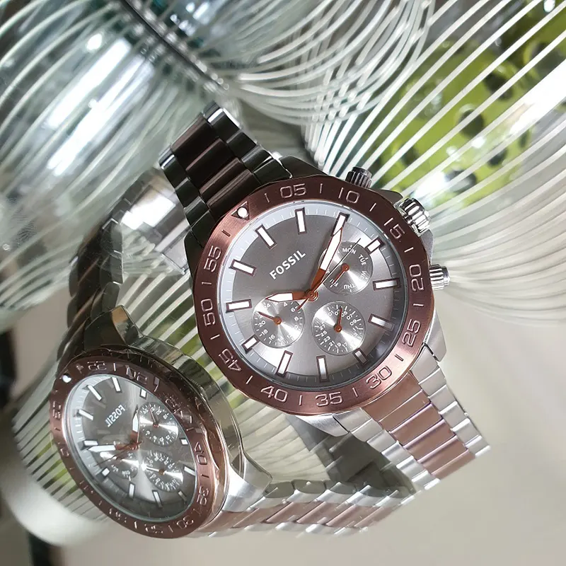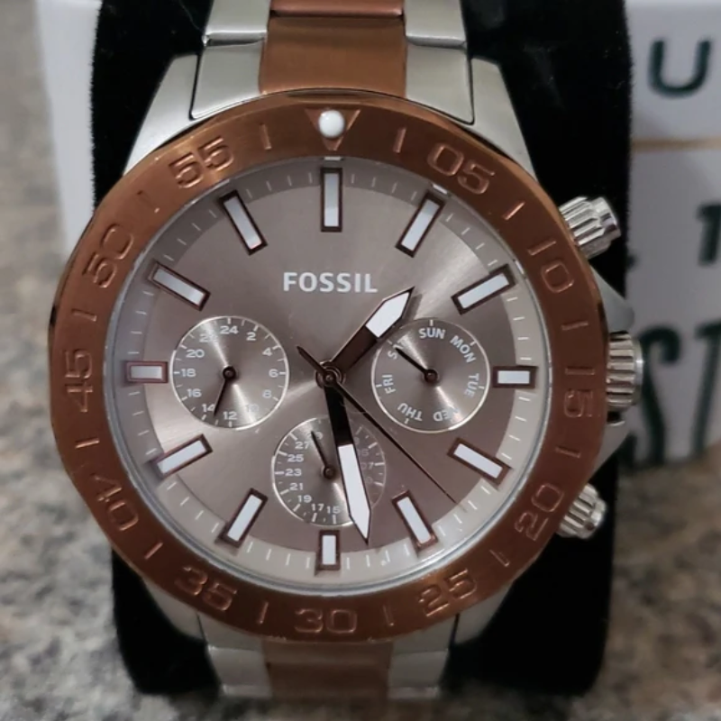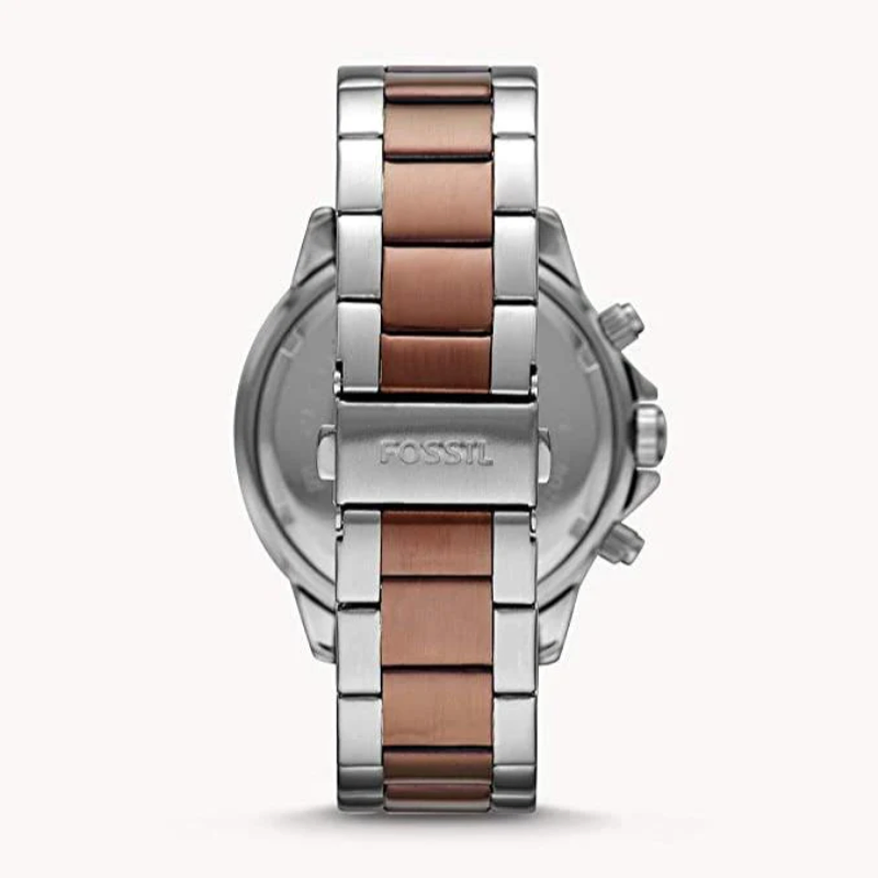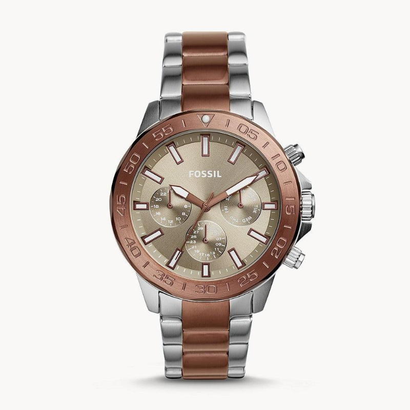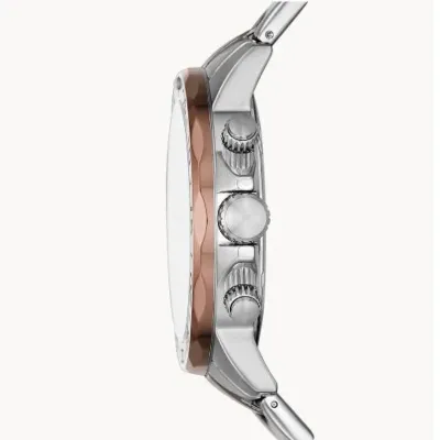 This men’s two-tone chronograph watch delivers a refined sporty look with its stainless steel and rose-gold tone bracelet and a matching rose-gold bezel. The textured champagne/grey dial features bold hour markers and chronograph sub dials for a premium, functional design that works for office wear or weekends. Powered by are liable quartz movement, it offers accurate timekeeping with a sleek modern finish—perfect for men who want an elegant watch with everyday performance.