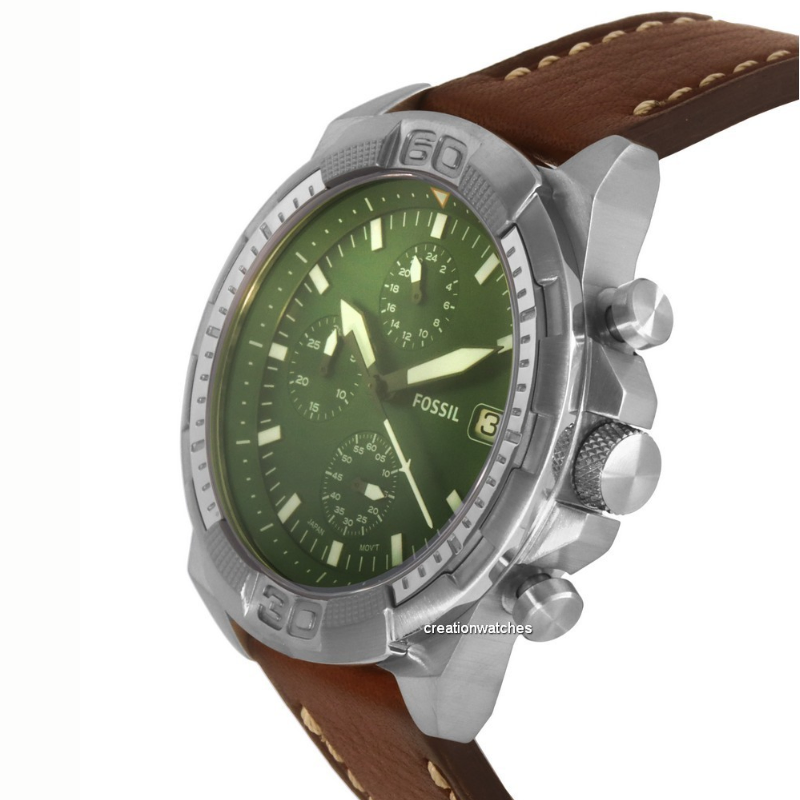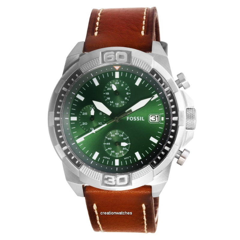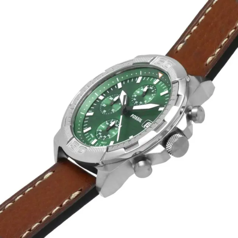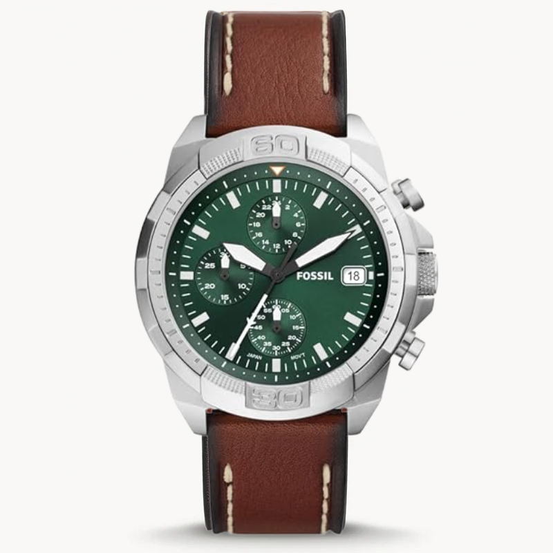 The Fossil FS5898 isa bold and modern men’s chronograph watch built for everyday performance andstandout style. Featuring a striking green dial with chronograph sub-dials, itdelivers a sporty yet premium look. The durable stainless steel case adds strength,while the comfortable brown leather strap gives a classic finish. Powered by areliable quartz movement, this watch is ideal for daily wear, office looks, andcasual outings.