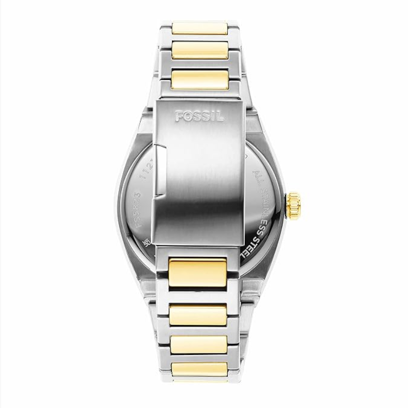 With its majestic designs, Fossil has unveiled an entirely different strategy in a sea of designs that focus on everything but make it easier to read time. Fossil's Everett is a superb analog watch, renowned for its flawless design and horological expertise. This 42mm Everett has a three-hand date movement, a two-tone silver and gold stainless steel bracelet, and a cream sunray and textured dial.
