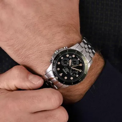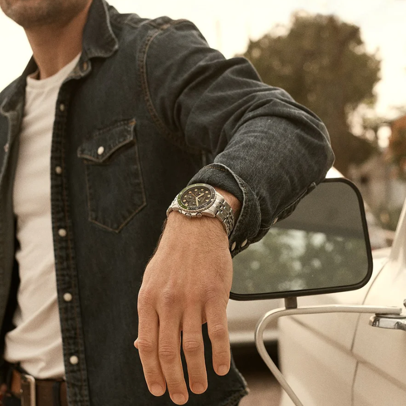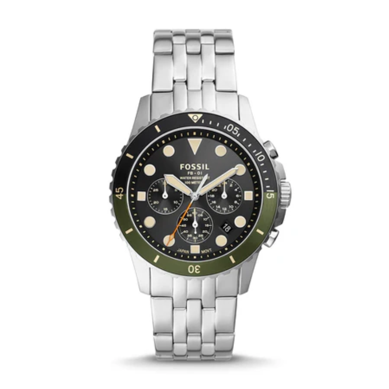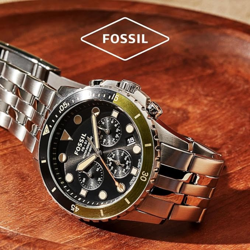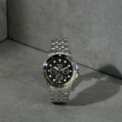 The Fossil FS5864Chronograph Watch has a rotating bezel, chronograph sub-dials, and a striking black dial with illuminated markings. This sporty timepiece, which has a sturdy stainless steel case and strap, offers accurate quartz movement and a tough design that is ideal for both daily use and adventure.