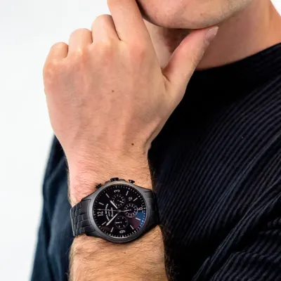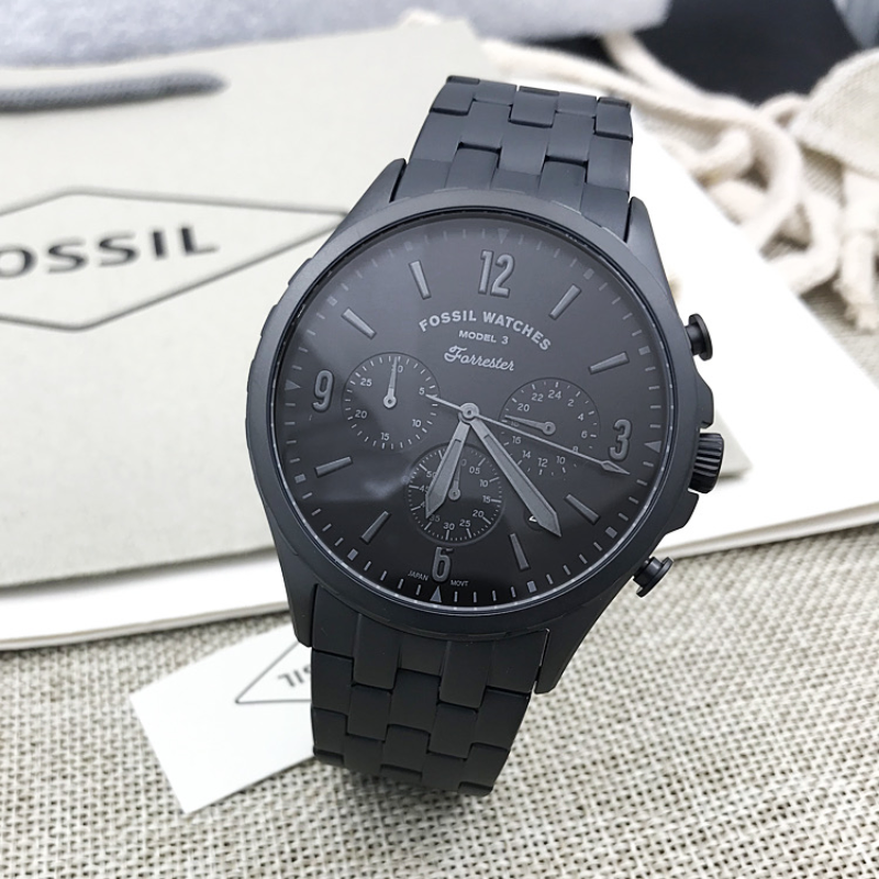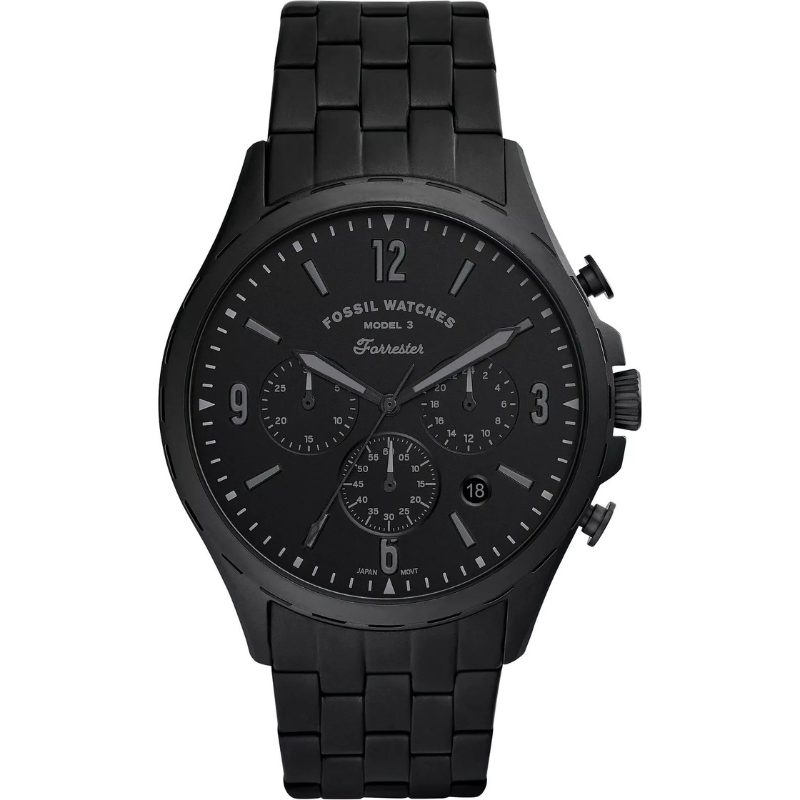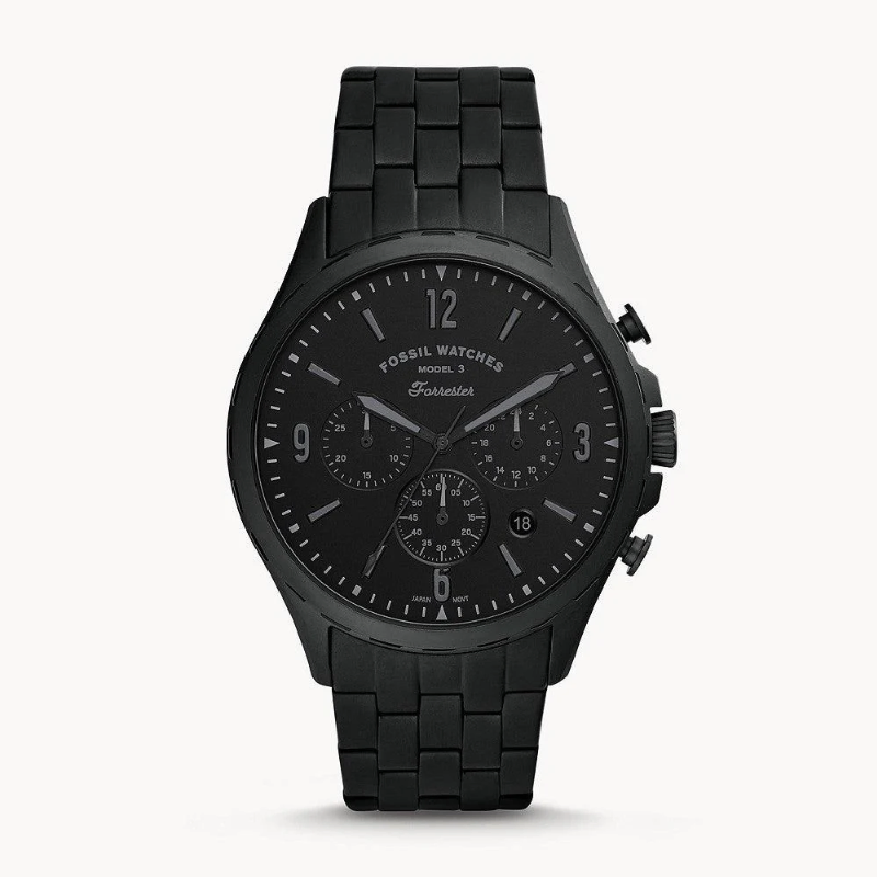 The Fossil Forrester Chrono FS5697 is a stylish and useful watch for men. The dial is black, and the case is composed of stainless steel. A date function is one of the watch's features. The watch features a 50-meter water resistance.