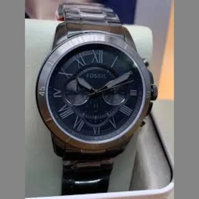 Smoke-tonestainless steel case with a black and smoke-tone stainless steel bracelet.Black stainless steel bezel. Black dial with black hands and Roman numeral hourmarkers.