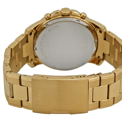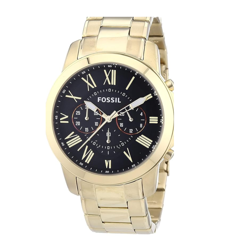 Fossil FS4815 Grant Chronograph men’s watch with gold-tonestainless steel strap and black dial. Stylish Roman numeral design with quartzmovement and chronograph function, perfect for formal and casual wear inBangladesh.