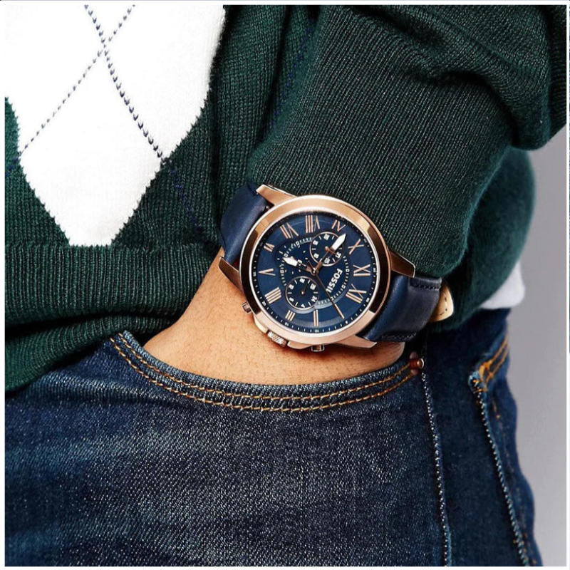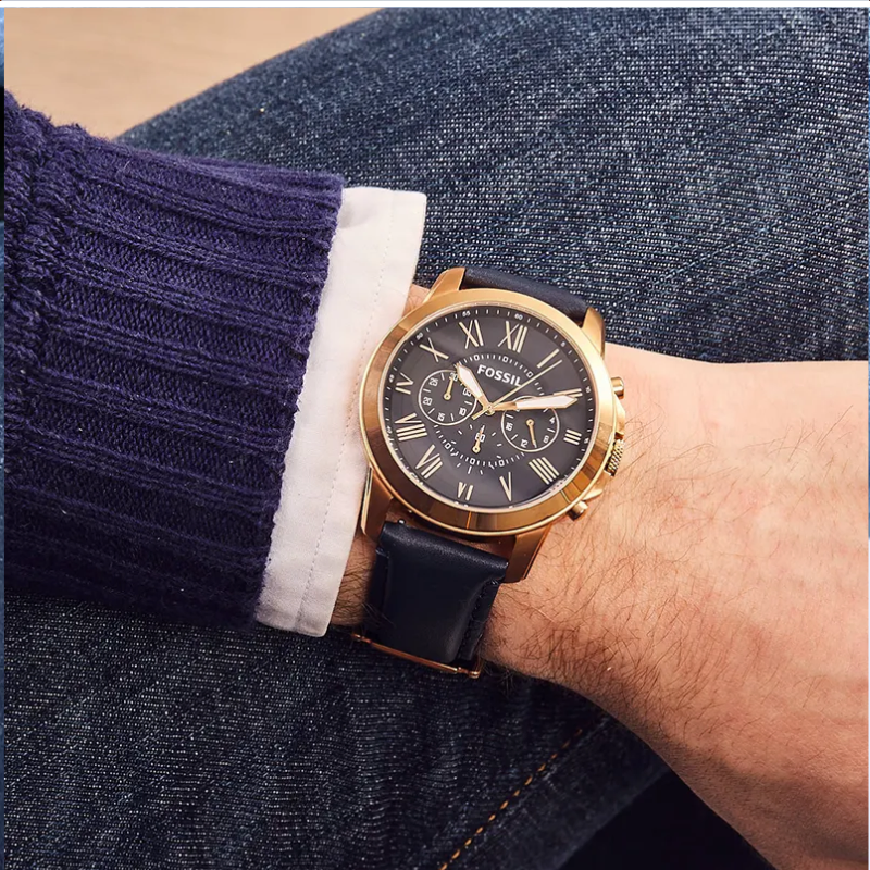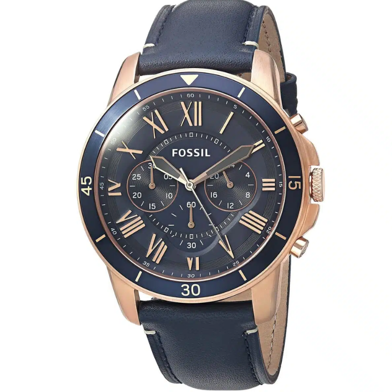 For everyday wear, this fantastic Grant Sport chronograph watch by Fossil is the perfect option. This piece is not to be missed because of its sturdy construction and use of premium steel and leather. The outer ring is gold, while the dial is royal blue. Additionally, it is fastened to a blue leather strap. The entire item is protected from erosion by a 44-meter casing.