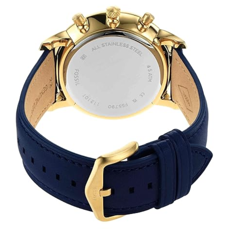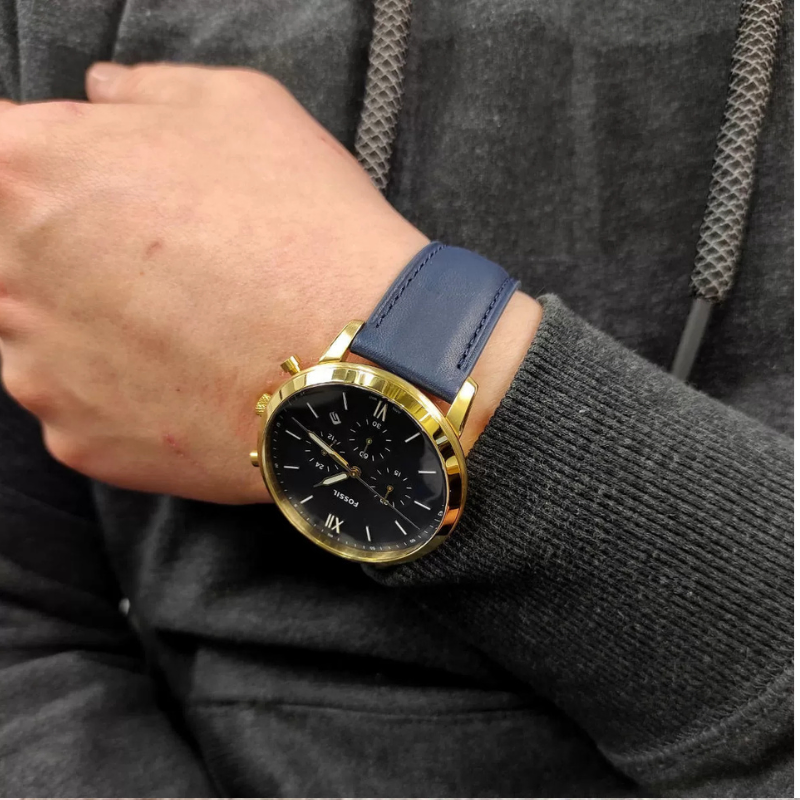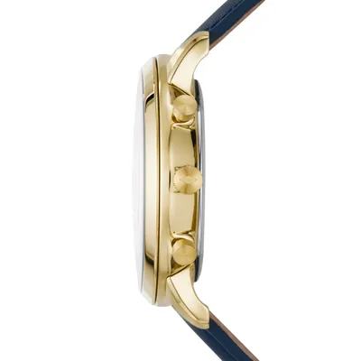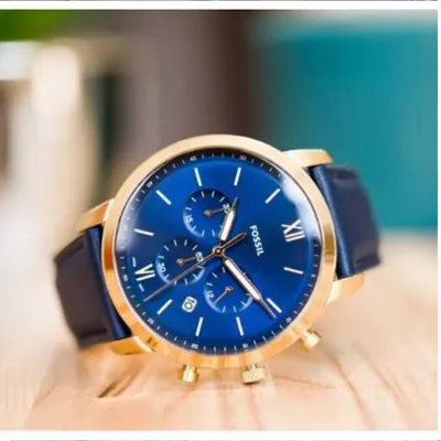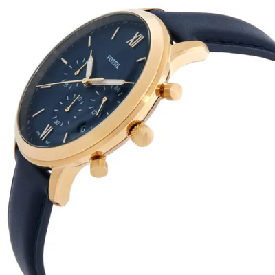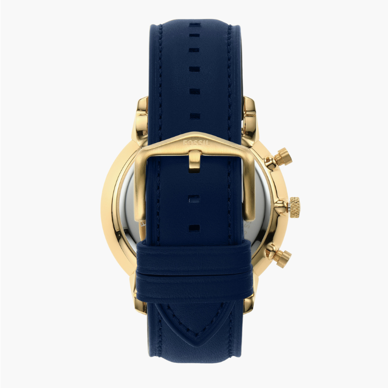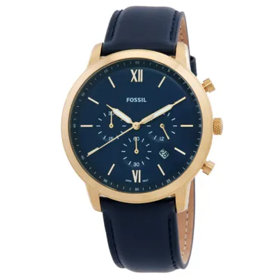 The Fossil Neutra Chrono watch lets you make the most of every second. This incredibly adaptable watch is the ideal accompaniment for morning to twilight. A gold-tone case wonderfully complements a bright blue dial with gold Roman and linear indexes. The watch is unified by the navy leather strap.