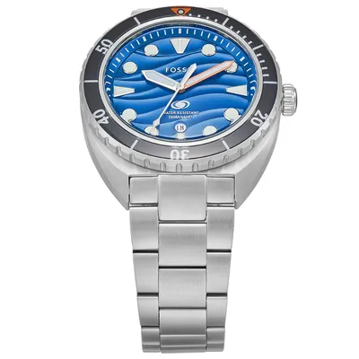 Make a bold statement with the Fossil Men’s Blue Dial Diver Watch, a perfect blend of sporty design and premium craftsmanship. Featuring a striking blue dial, unidirectional black bezel, and a solid stainless-steel bracelet, this timepiece delivers both durability and modern elegance. Designed for adventure, it offers 200 meters of water resistance, making it ideal for everyday wear and underwater activities. Stylish, functional, and 100% original — this watch embodies Fossil’s signature balance of performance and sophistication.