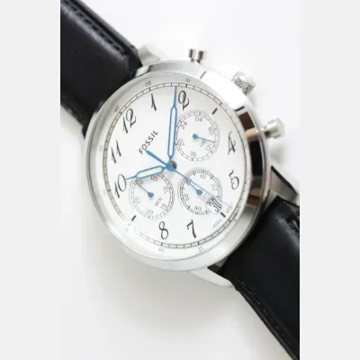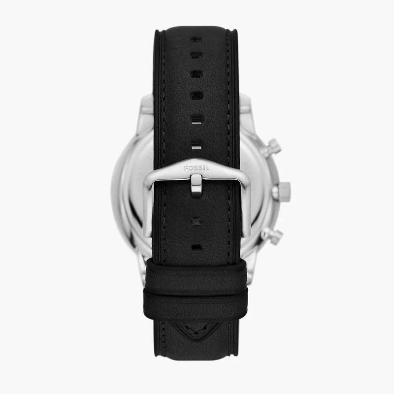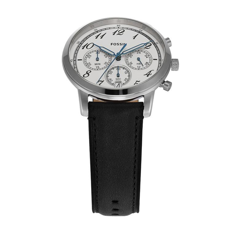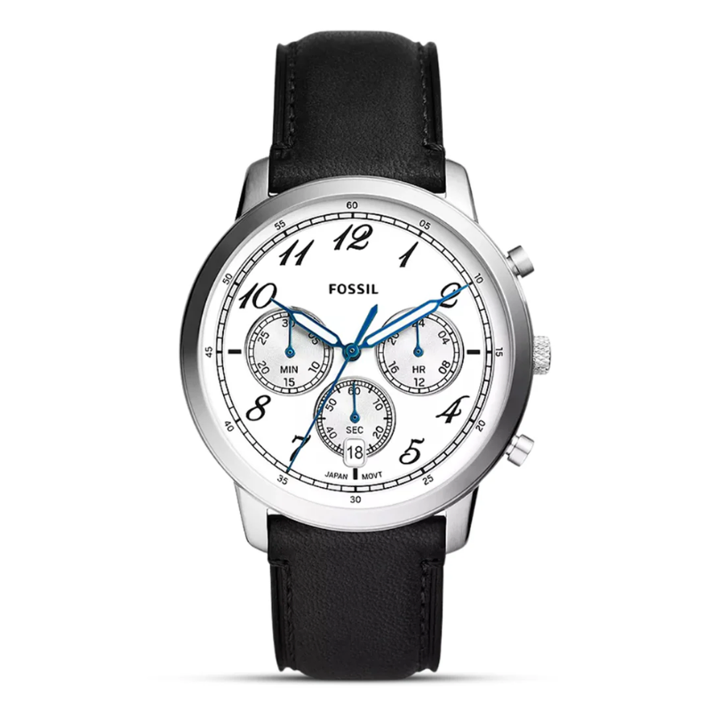 Inspired byarchitecture with its simple proportions and symmetry, this functional NeutraChronograph is refined and versatile. It features an updated numeral font,stainless steel case, white sunray dial, brown leather strap with nubuck liningand subdials for 24-hour time and stopwatch. Fossil leather products supportresponsible manufacturing via the Leather Working Group.