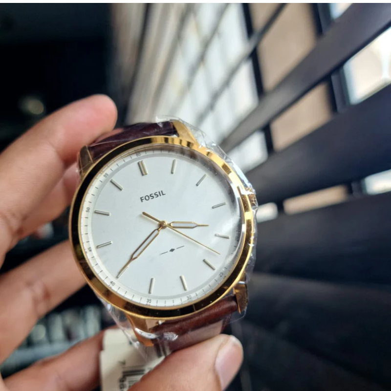 The fossil The Minimalist is a classic and sophisticated watch with a sturdy stainless steel frame and a sleek brown leather band. Its precise quartz movement, 50M water resistant, mineral crystal protection, and clean white dial with gold-tone hands make it the ideal combination of everyday dependability, luxury, and simplicity.