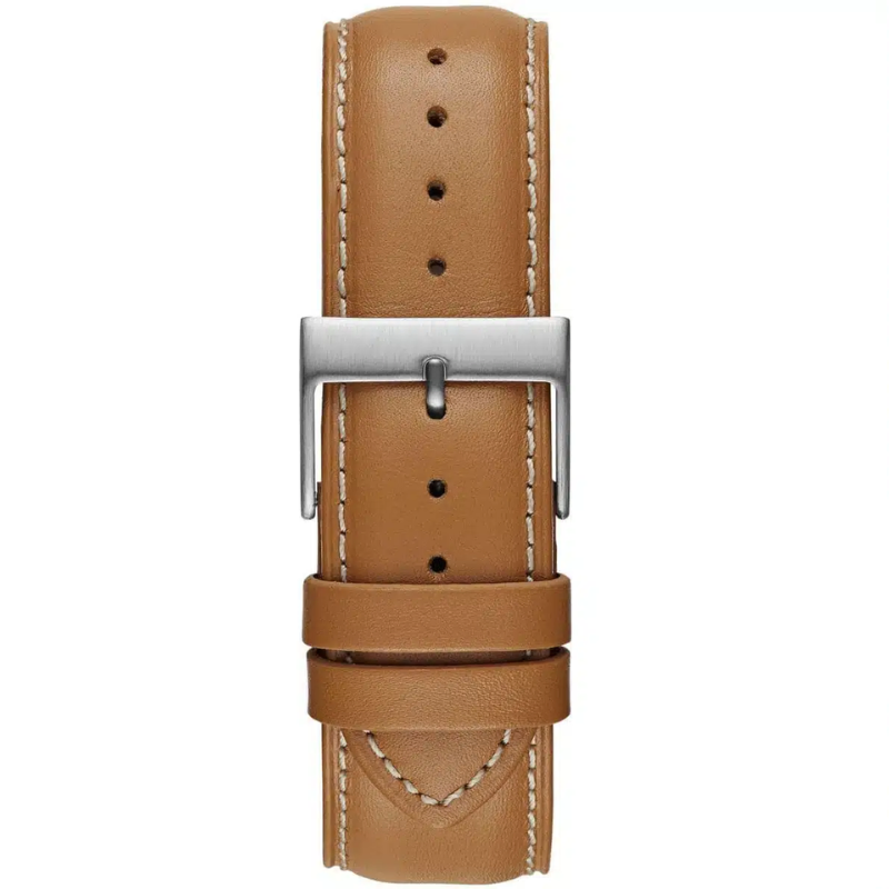 The elegant GUESSW0669G3 men's watch has a fine brown leather band, a silver-tone stainless-steel frame, and a chic blue dial with chronograph sub-dials. This multipurpose watch, which is ideal for business, casual, and formal attire, was designed with precision and sophistication in mind.