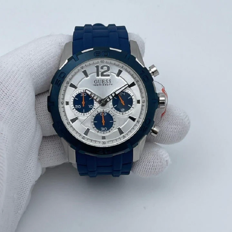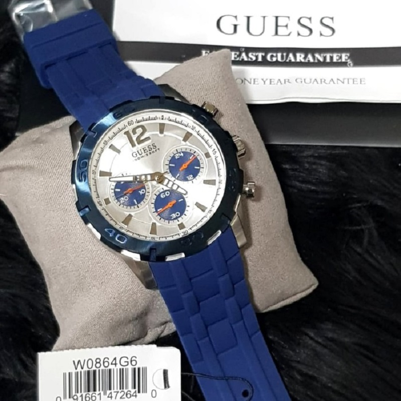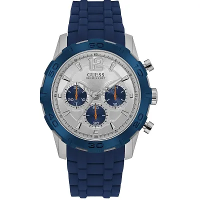 The brand was introducedby Marciano brothers in 1891. Guess exquisite timepieces brings out thevastness of watchmaking. Collections range from ladies fashion luxury watcheswith a certain level of subtleness and intricate details and crystals on the bezelwith the simplistic design to men's sporty and daring collection that isdetailed with versatile designs and creative looks. The interestingcharacteristics of these timepieces reflect an aesthetic beauty has beenmaintained by the brand since inception. This analog Men's timepiece is carftedin round shape case with silver color dial and blue color silicone strap.