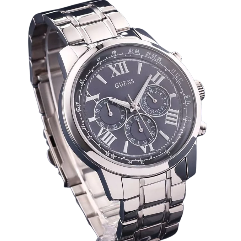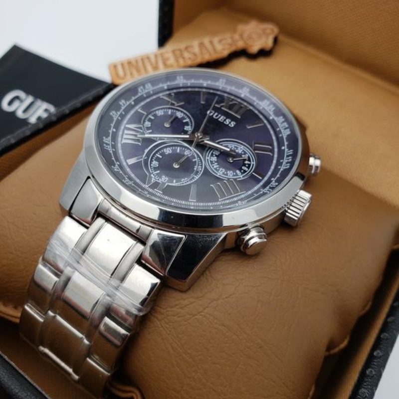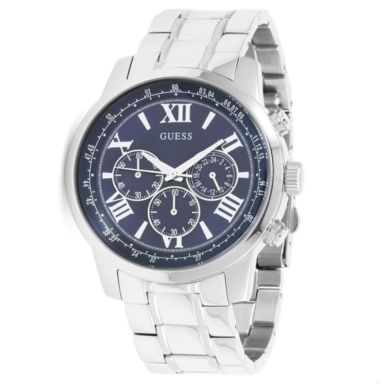 GuessMen's Horizon Chronograph is an essential wristwatch available inthe catalog, known for its high-quality materials, exquisitecraftsmanship, and reliable movement. The online store offers a range ofclassic and sporty designs at discounted prices, ensuring quality. The productis authentic, brand new with tags, and comes in original packaging.