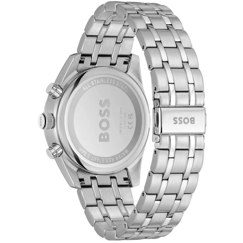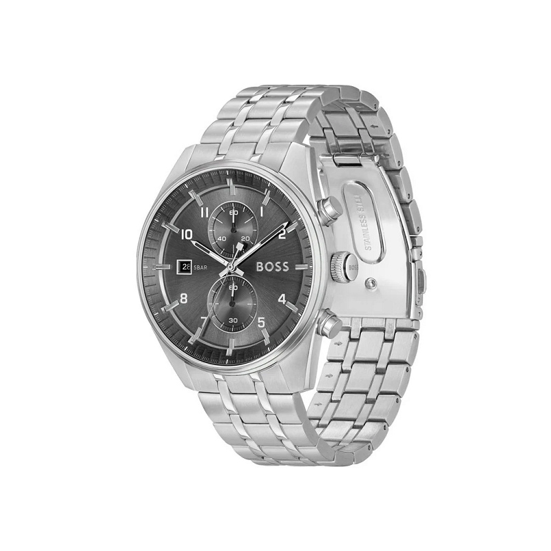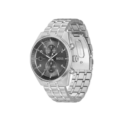 This HugoBoss watch has a case made of stainless steel with a diameter of 44 mm and isfitted with a metal band. Inside the case lies a Seiko Instruments Inc.movement and the watch features a Mineral crystal.