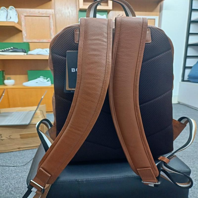 Carry in style with the Hugo Boss Backpack — a sleek blend of modern design and everyday function. It features a two-way zip, inner zip and open pockets, metal logo detailing, and a sturdy top handle. Comes with a protective dust bag. Ideal for professionals and travelers alike.