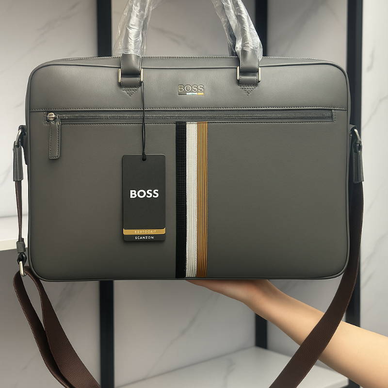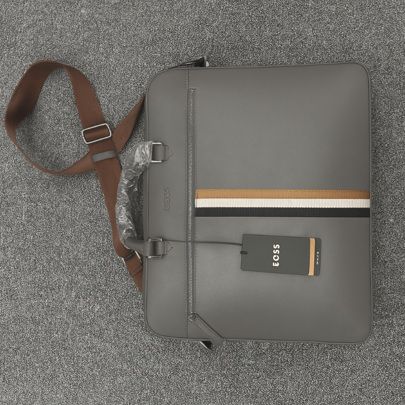 HUGO BOSS Leather Backpack – Modern Elegance in GREY