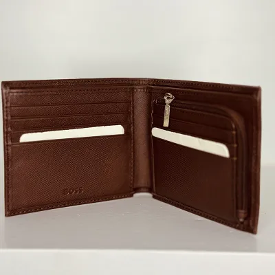 Crafted from high-quality genuine leather, this sleek Hugo Boss short wallet combines modern design with everyday functionality. Featuring multiple card slots and subtle branding, it’s made for those who value clean lines, smart organization, and understated luxury. A sophisticated essential for the modern gentleman.