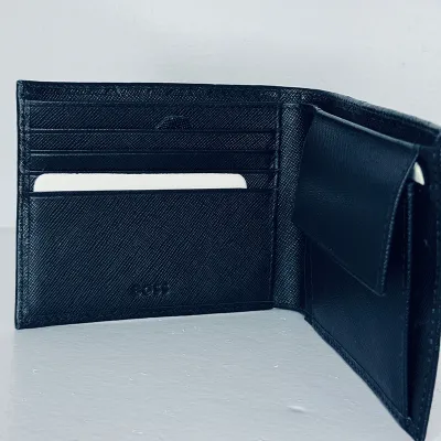 Crafted from high-quality genuine leather, this sleek Hugo Boss short wallet combines modern design with everyday functionality. Featuring multiple card slots and subtle branding, it’s made for those who value clean lines, smart organization, and understated luxury. A sophisticated essential for the modern gentleman.