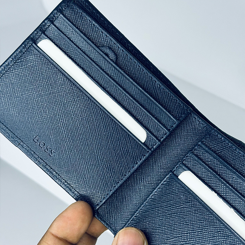 Crafted from high-quality genuine leather, this sleek Hugo Boss short wallet combines modern design with everyday functionality. Featuring multiple card slots and subtle branding, it’s made for those who value clean lines, smart organization, and understated luxury. A sophisticated essential for the modern gentleman.