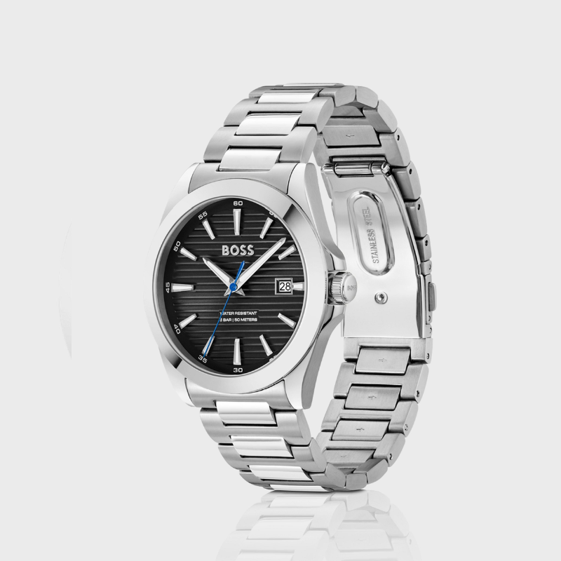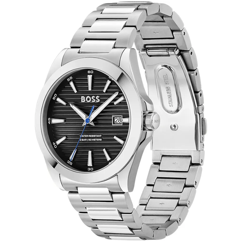 This Hugo Boss watchhas a case made of stainless steel with a diameter of 41 mm and is fitted witha stainless steel band. Inside the case lies a Seiko Instruments Inc. movementand the watch features a Mineral crystal.