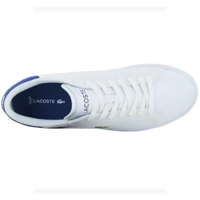 Branding: Iconic Lacoste crocodile logo on the side, with Lacoste text on tongue and heel