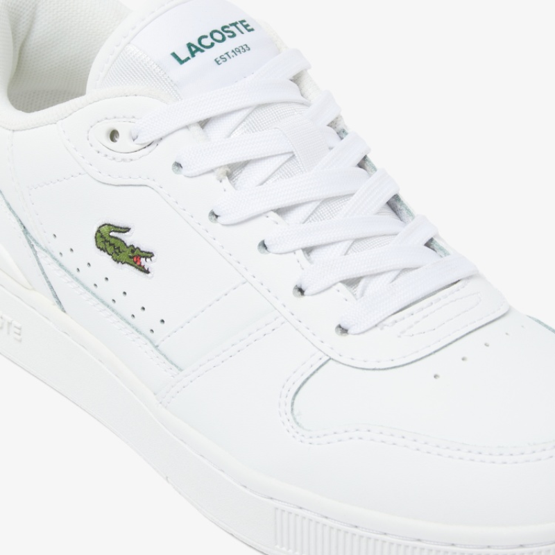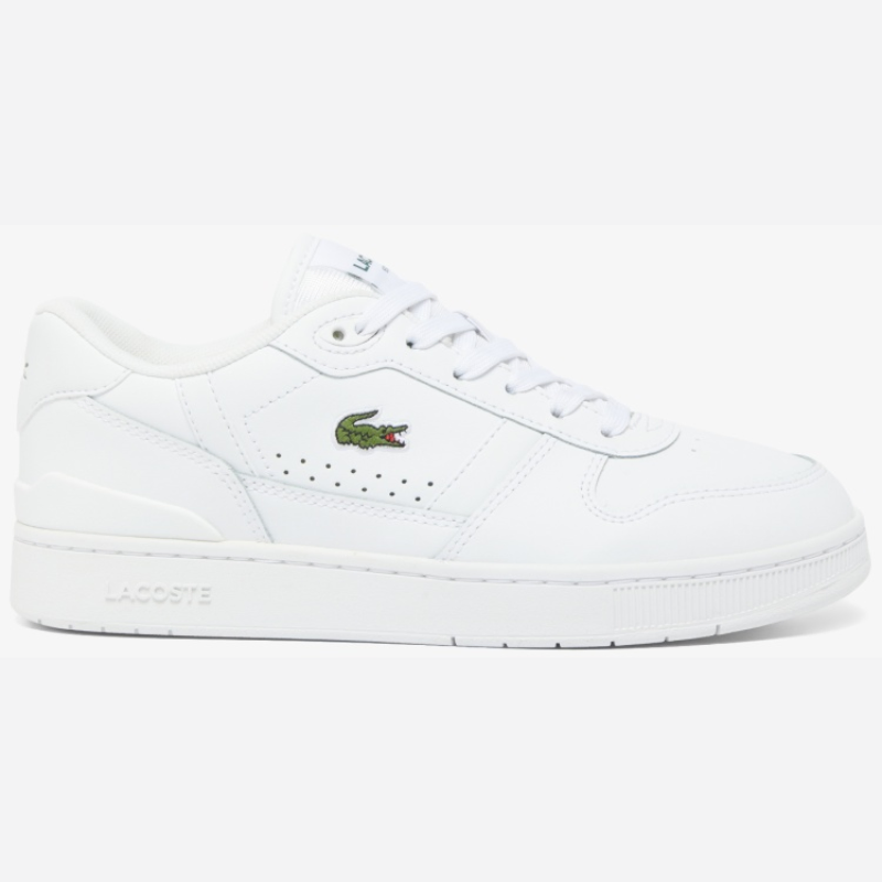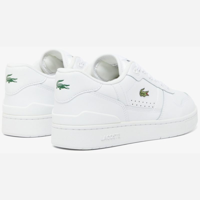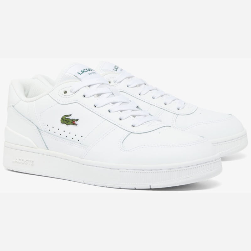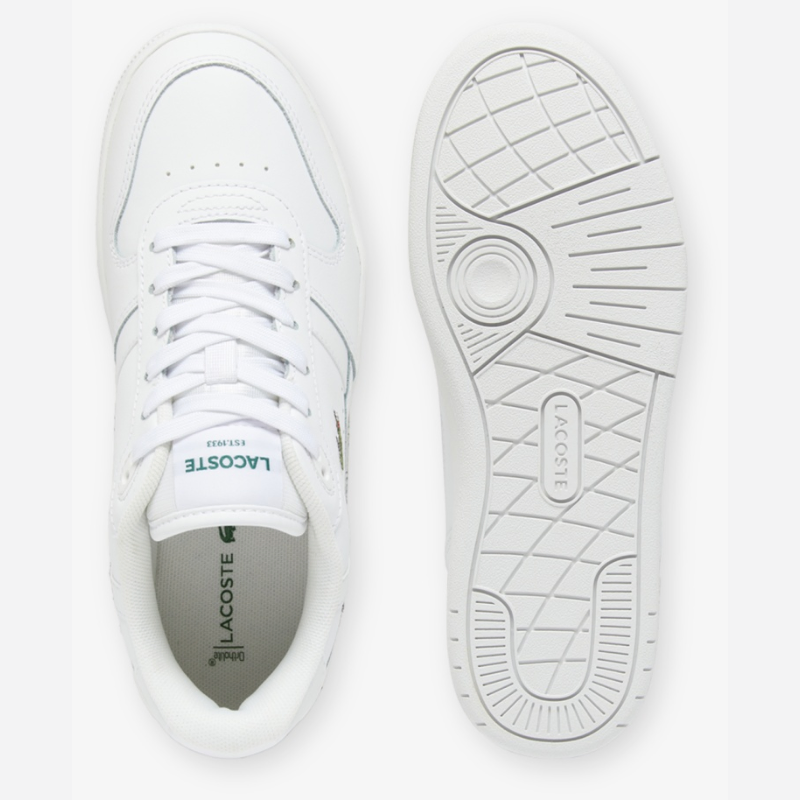 The 748SFA004221G is a sleek, low-top Lacoste sneaker blending sporty and urban aesthetics. The mostly white coated-leather upper lends a clean, modern look, while tonal stitching gives subtle texture. The green embroidered crocodile logo on the side adds the brand’s signature touch. Side perforations are present for ventilation. A slim TPU heel clip and defined heel panel reinforce the back while elevating the design. The midsole is thick but proportioned to keep the silhouette elegant, and it includes the “LACOSTE” embossing. Inside, it uses an Orth Olite footed for comfort, and the textile lining provides breathability. The rubber out sole ensures grip for everyday wear. Overall, it’s a refined reinterpretation of tennis-inspired retro style, modernized for urban fashion.