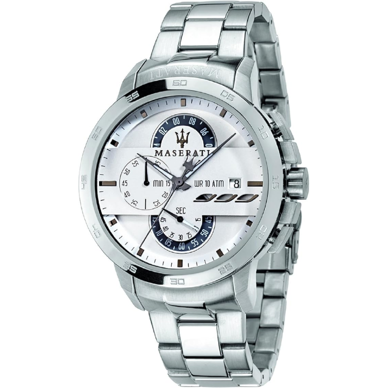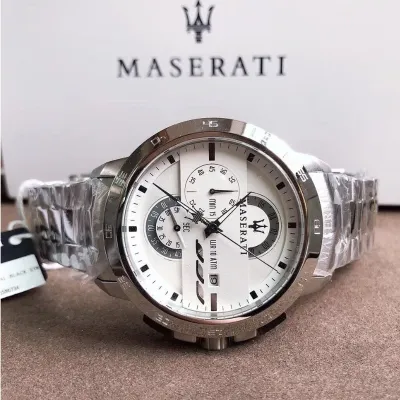 TheMaserati IngengoR8873619004 is the perfect blend of elegance and functionality,making it a nexceptional addition to any man’s wardrobe. Designed with a sleek,white stainless steel case, this watch embodies both sophistication anddurability. The heart of the Ingen go is its precise quartz movement, ensuringreliable time keeping and accuracy with every tick. Whether you're dressing upfor a formal event or adding a touch of refinement to a casual look, the Ingen goeffortlessly complements any outfit.