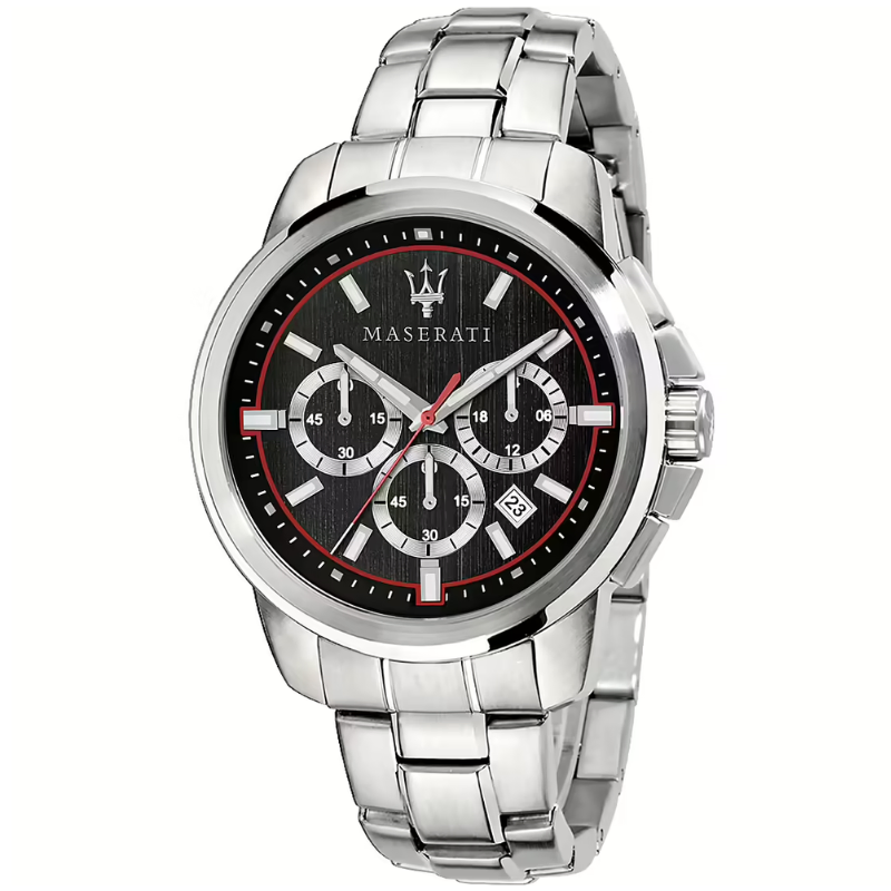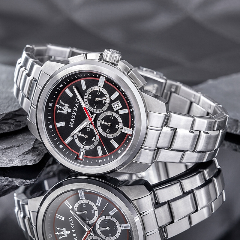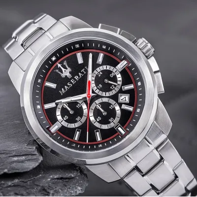 Thecombination of silver and black is timeless in the world of men's watches. In asteel envelope, the Maserati Successo Chrono R8873621009 was embedded.Ciferblat, which includes a dating of the month days, a 24-hour time in theform of a sub tractor and a practical chronograph. The whole was coated with amineral slender for protection against external damage.