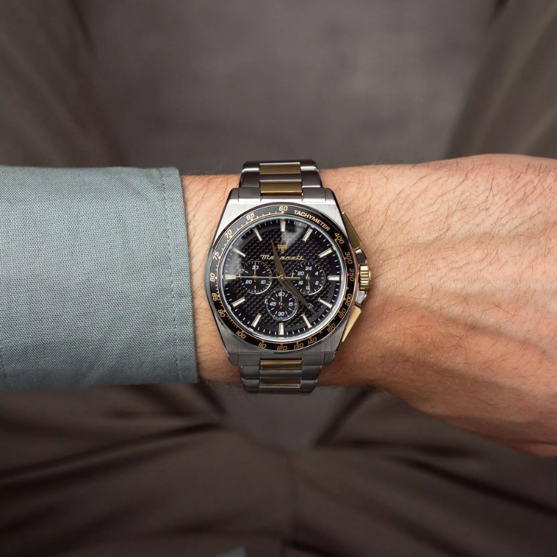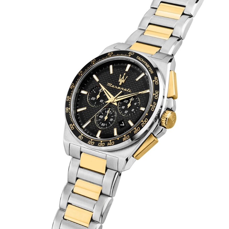 With 100 meters ofwater resistance, the Maserati Velocitá Chronograph is suitable for swimmingand everyday use. Its silver stainless steel bracelet complements the casebeautifully, creating a cohesive and sophisticated look.