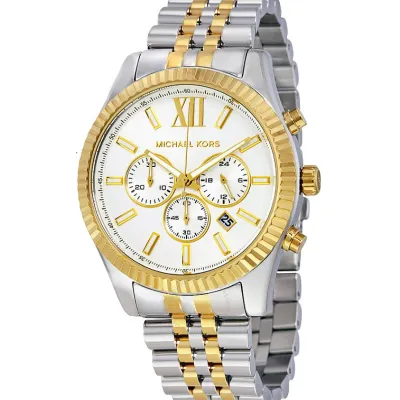 Explore the Michael KorsMK8344 Lexington Chronograph Men's Watch a stylish timepiece perfect for anyoccasion. Featuring a sophisticated silver dial and quartz movement, this watchcombines elegance with functionality. .This watch is water-resistant up to 100meters (330 feet) and includes functions for date, day, hour, minute, andsecond. Lexington Chronograph Men's Watch is an excellent choice for thoseseeking a fashionable and versatile accessory.