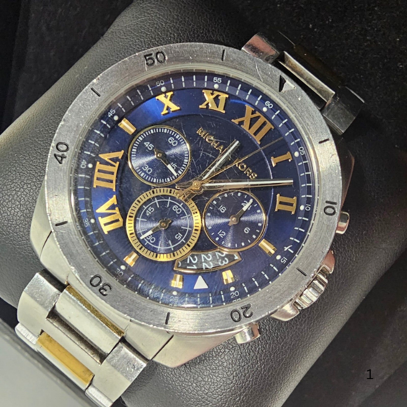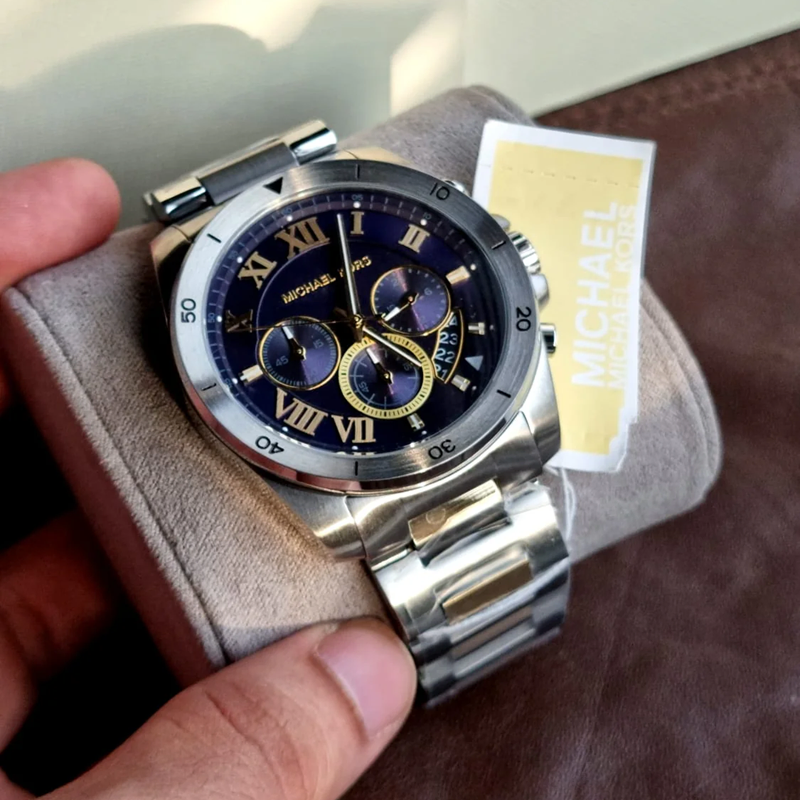 Isan outstanding watch from the Michael Kors Brecken collection. Featuring an allgold stainless steel design. Black sunray dial with polished steel detailsincluding roman numerals paired with chronograph and date functionality.Japanese quartz movement and 100 meter water resistance (swimming/watersports). A masculine time-piece perfectly suited for all occasions.