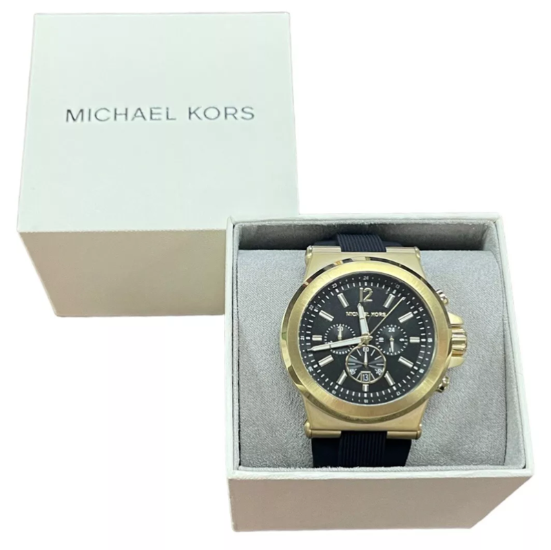 Introducingthe Michael Kors Dylan Black Silicon Strap Men's Watch , the perfect accessoryfor the modern man. This sophisticated watch boasts a sleek black silicon strapand a timeless design that exudes luxury and exclusivity. Never be late againwith this stylish and functional timepiece.