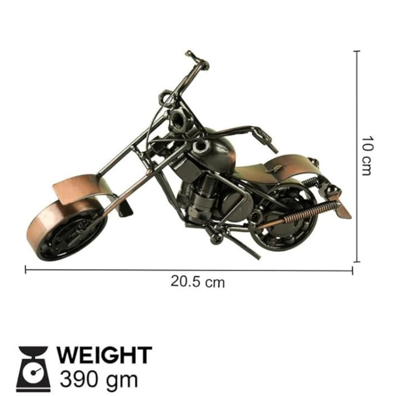 IntroducingHandcrafted Products – where craftsmanship meets authenticity for a touch ofnatural sophistication. This is a master piece super bike made up of metal. Alot of hard work has gone into the making of this Antique Super bike. It can bea perfect showpiece and can be placed elegantly in your decor section of thehouse. Its unique piece for display desktop or shelf. Most of our metalhandicrafts are of superb quality and look. Keep this on your table and addthat retro look. Its us and our stories that makes our house a home. A perfectornament for home decoration, dining table or a gift to the loved ones.Enlightens every daily life.