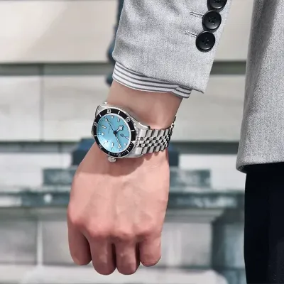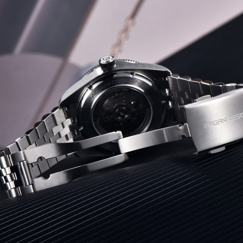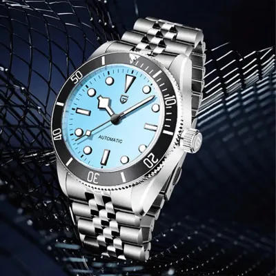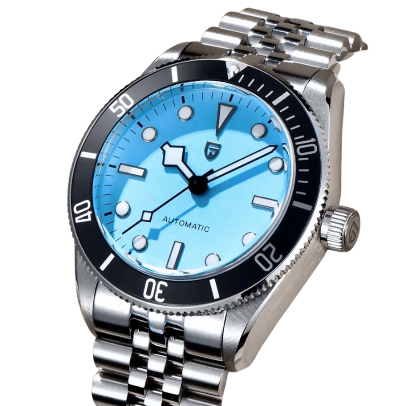The Pagani Design(PD-1812) is a sophisticated watch that blends style and functionality. Its strong bezel and eye-catching Tiffany blue dial create a distinctive and striking look. This timepiece delivers comfort and classic charm when paired with the traditional Jubilee bracelet. Its sapphire crystal and stainless steel construction guarantee its longevity and resistance to scratches.