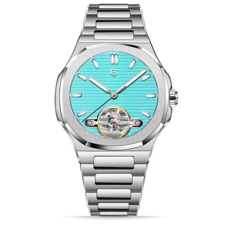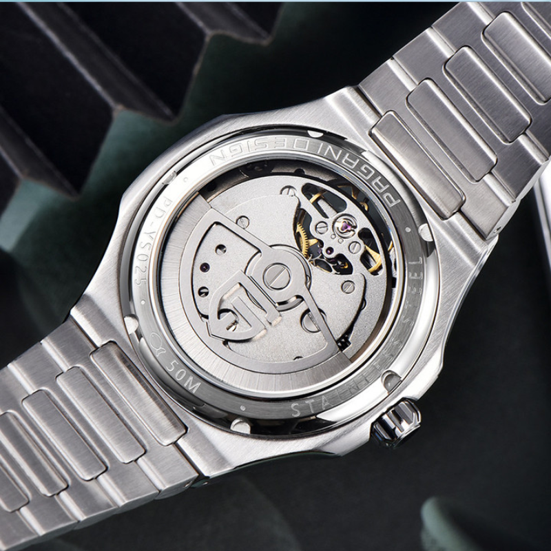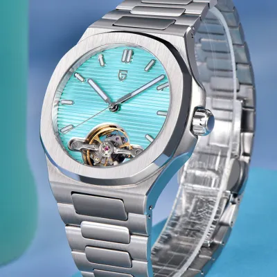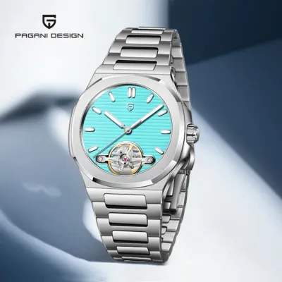 A stylish watch that blends style and practicality is the Pagani Design (PD-YS025). It has a modern yet timeless appeal thanks to its eye-catching two-tone stainless steel case and band. Without the need for a battery, the watch's accurate automatic movement ensures dependable timekeeping. The scratch-resistant sapphire crystal adds durability and clarity, and the elegant dial is supplemented by luminous hands and markers for improved readability.