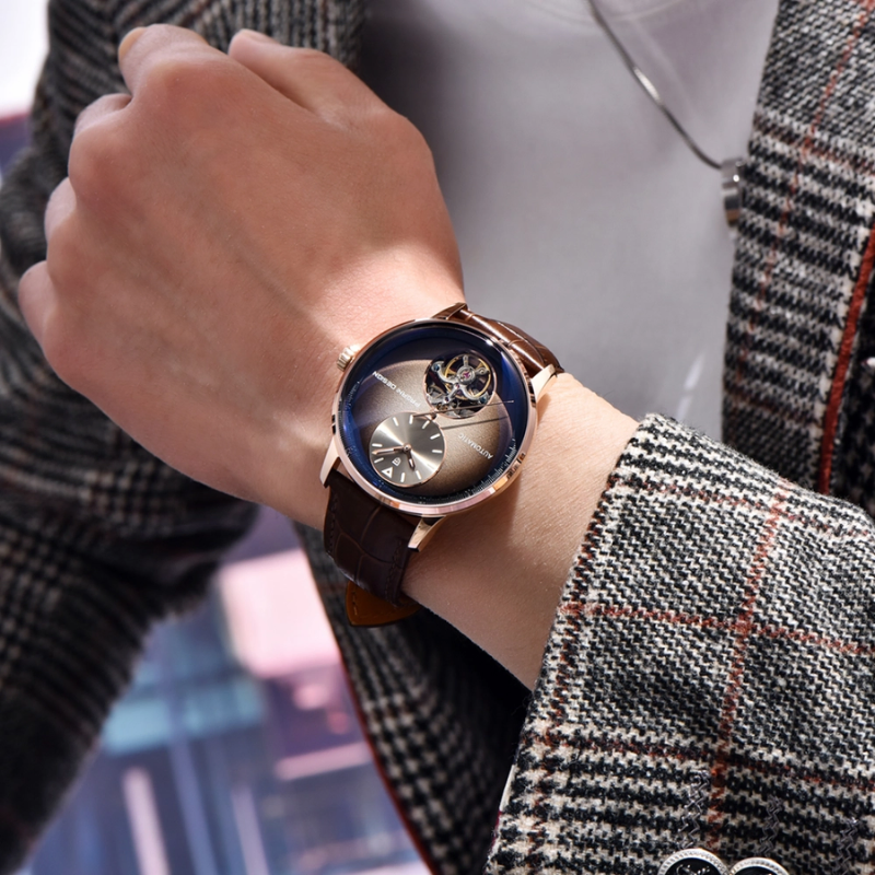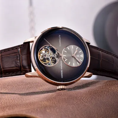 Pagani Design PD-1796Men’s Automatic Watch showcases a blue open-heart dial, sapphire crystal, stainless steel case, and leather strap. Designed for elegance and performance, this mechanical watch offers long-lasting durability and classic style.
