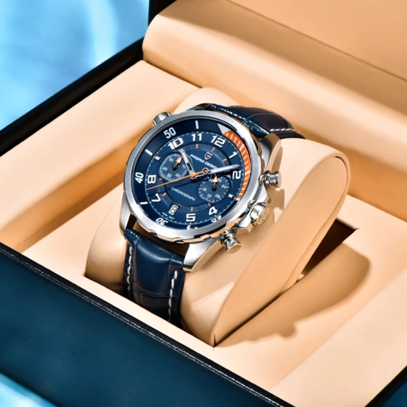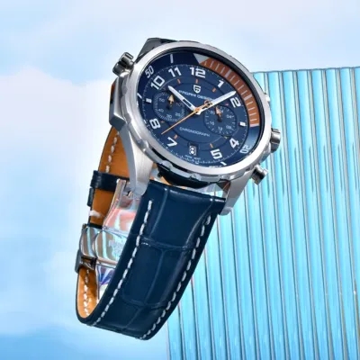The PAGANI DESIGNPD-1811 embodies both contemporary accuracy and traditional style. This watch has an amazing 10 bar water resistance, is covered by a sapphire crystal, and is powered by a precise Japanese quartz movement (battery supplied). Its stylish leather strap complements the dial's bright hands and attractive Arabic numerals. Superior dependability in a distinctly opulent style.