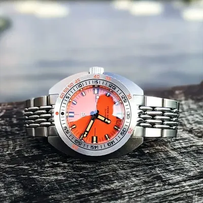PD-1719 Stainless-steel Watch features a bold orange dial, durable stainless steel case and bracelet, and precise quartz movement. Designed for everyday wear with a sporty-luxury look, it offers reliability, comfort, and standout style for modern watch lovers.