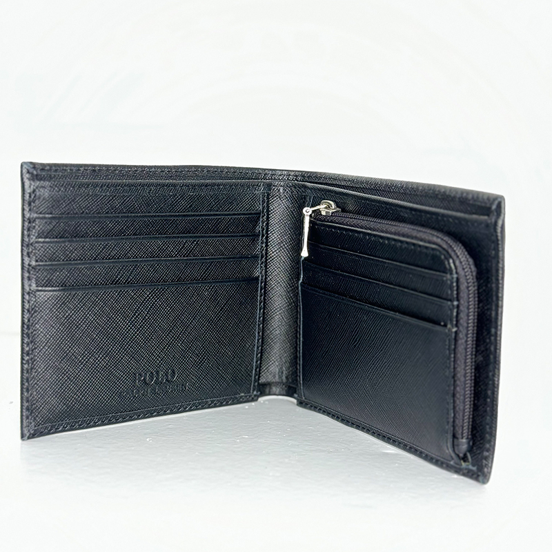Crafted from luxurious full-grain leather, this slim Polo Ralph Lauren wallet offers multiple card slots, sleek logo detailing, and timeless design. Perfect for those who appreciate refined craftsmanship and classic, understated style. An ideal choice for elevating your everyday essentials with a touch of luxury.